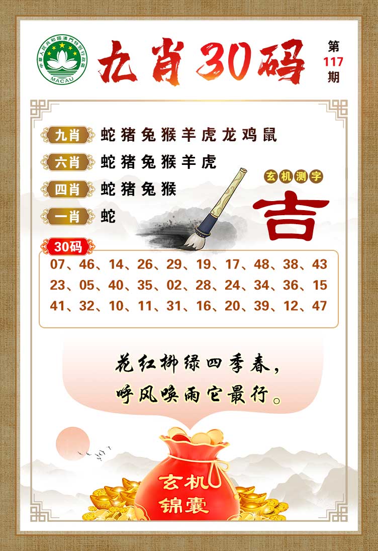 115期:稳中⑨肖 开奖日更新 開:?00准